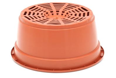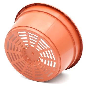 Flat base with high feet and holes – high feet allow hydroponic cultivation.