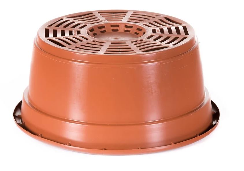 Flat base with high feet and holes – high feet allow hydroponic cultivation.