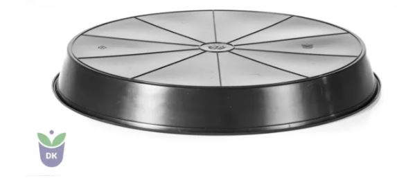 Flat base with low feet and holes – designed for use on agrotextile.