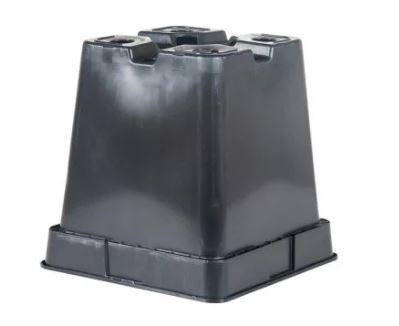 Flat base with high feet and holes – high feet allow hydroponic cultivation.