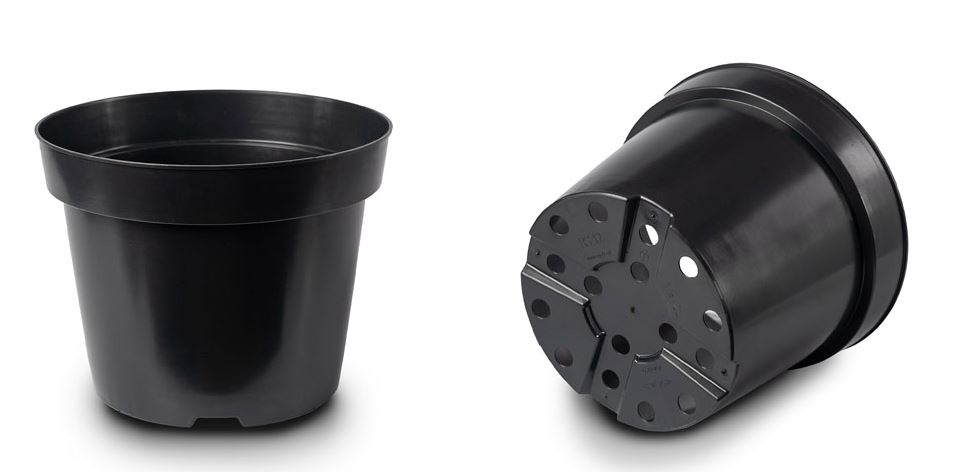 Flat base with low feet and holes – designed for use on agrotextile.