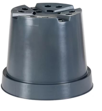 Flat base with low feet and holes – designed for use on agrotextile.