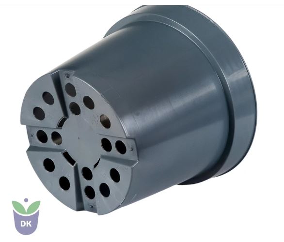 Flat base with high feet and holes – high feet allow hydroponic cultivation.