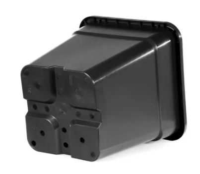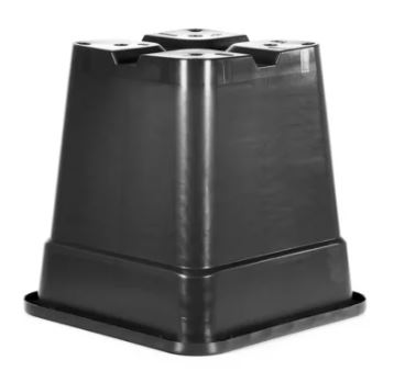 Flat base with high feet and holes – high feet allow hydroponic cultivation.