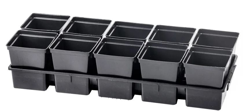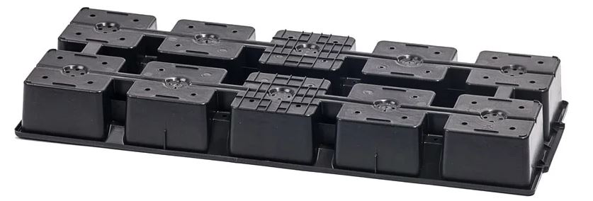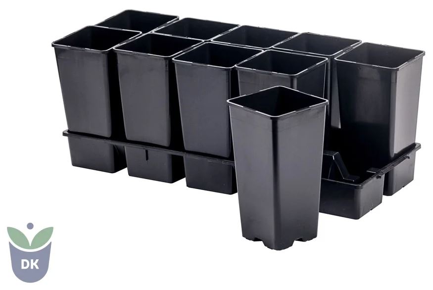Flat base with high feet and holes – high feet allow hydroponic cultivation.