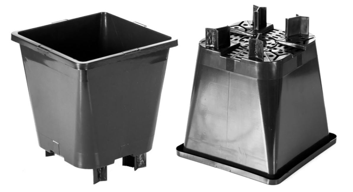 Flat bottom with high feet and holes – high feet allow hydroponic farming.